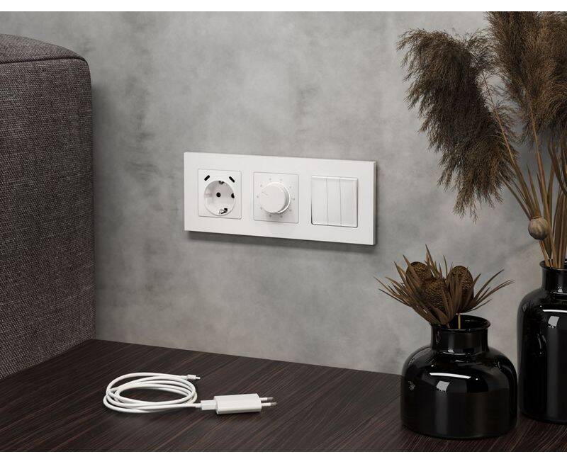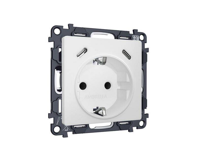 Комплект механизма электрической розетки 2USB С+C 20W с/з на винтовых зажимах 16A-250V Alfa Белый ма