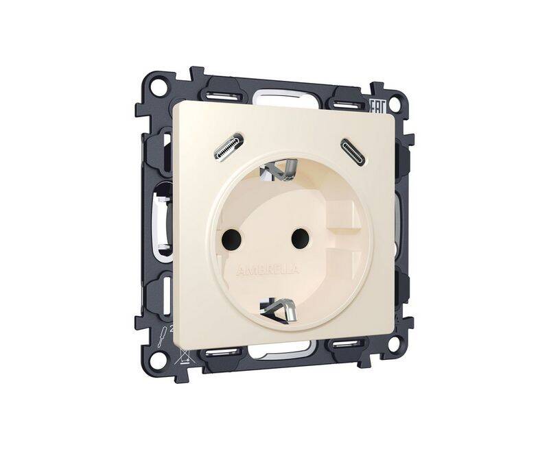 Комплект механизма электрической розетки 2USB С+C 20W с/з на винтовых зажимах 16A-250V Alfa Бежевый