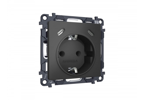 Комплект механизма электрической розетки 2USB С+C 20W с/з на винтовых зажимах 16A-250V Alfa Графит м