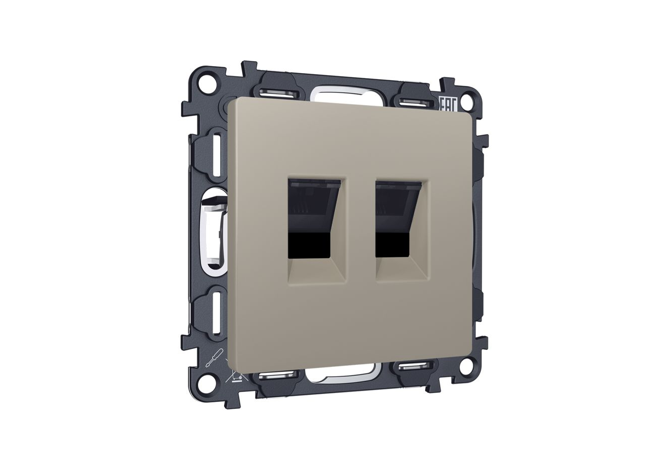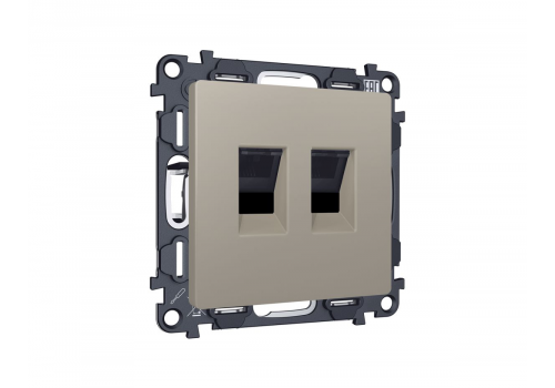 Комплект механизма компьютерной двойной розетки RJ-45 с автоматической защитной шторкой Alfa Серо-бе