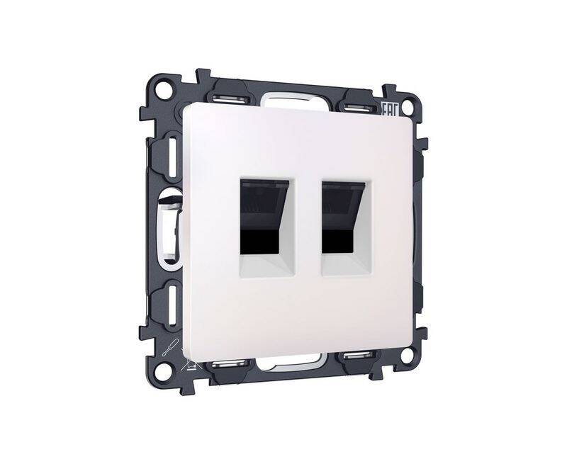 Комплект механизма компьютерной двойной розетки RJ-45 с автоматической защитной шторкой Alfa Жемчуг