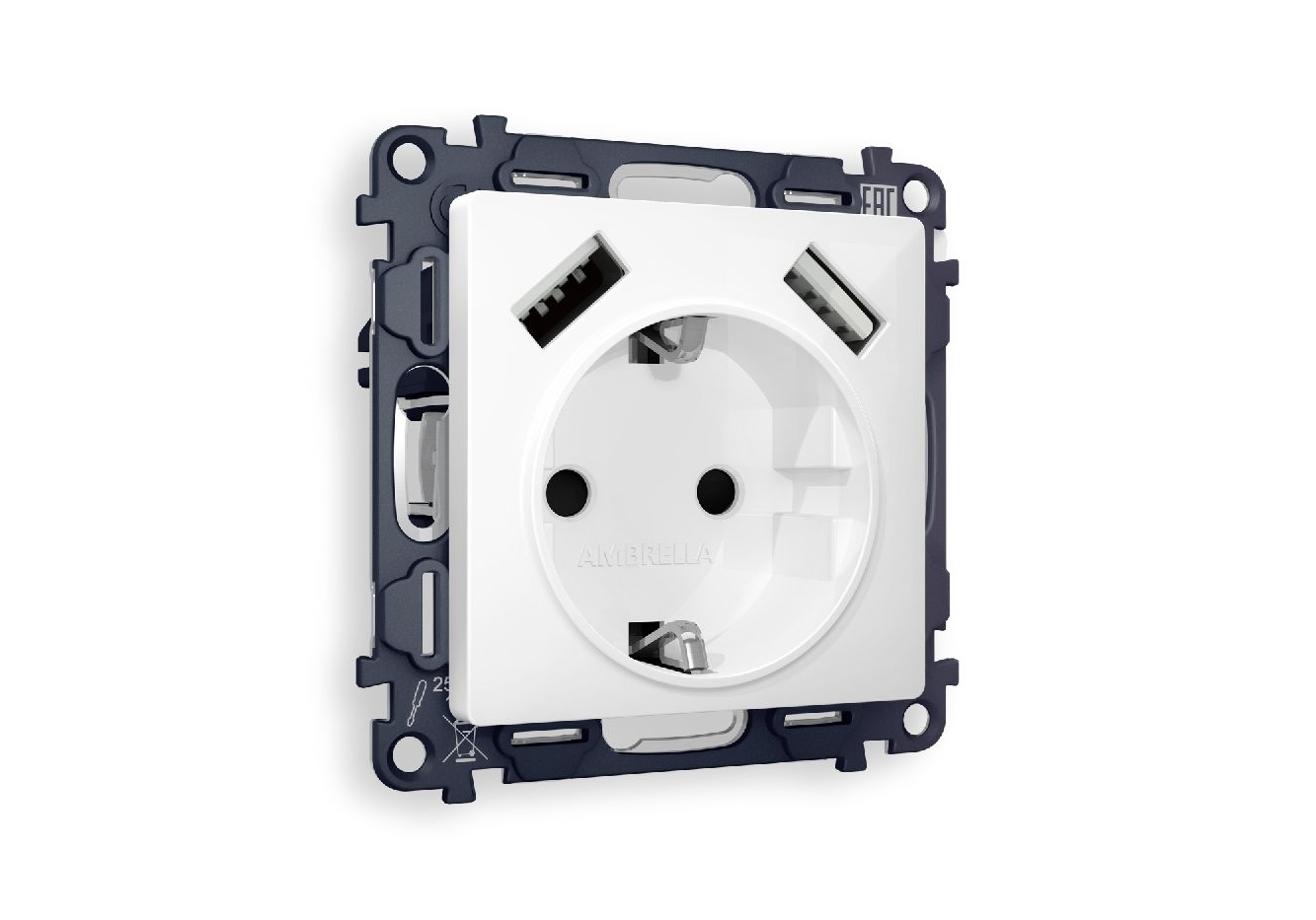 Комплект механизма розетки 2USB A+A 18W (быстрая зарядка) с/з Ambrella Volt Alfa MA109010
