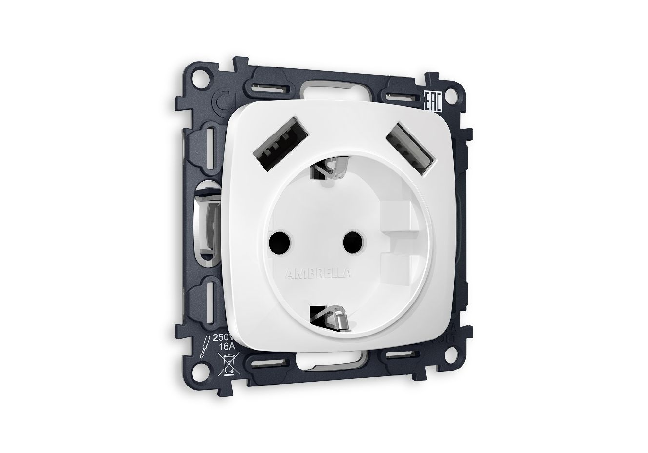 Комплект механизма розетки 2USB A+A 18W (быстрая зарядка) с/з Ambrella Volt Omega MO129010