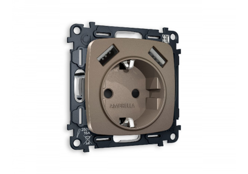 Комплект механизма розетки 2USB A+A 18W (быстрая зарядка) с/з Ambrella Volt Omega MO639010