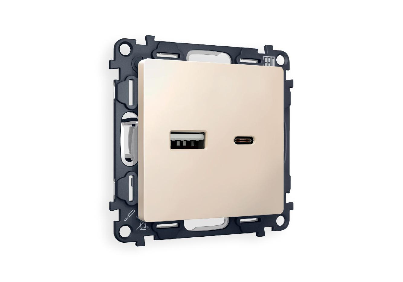 Комплект механизма розетки 2USB A+C 20W (быстрая зарядка) Ambrella Volt Alfa MA331010