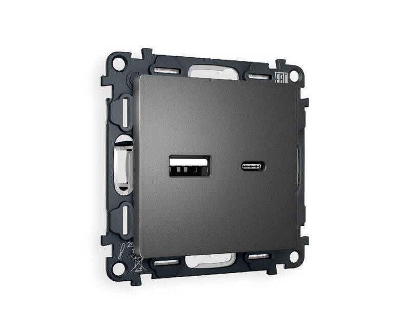 Комплект механизма розетки 2USB A+C 20W (быстрая зарядка) Ambrella Volt Alfa MA661010