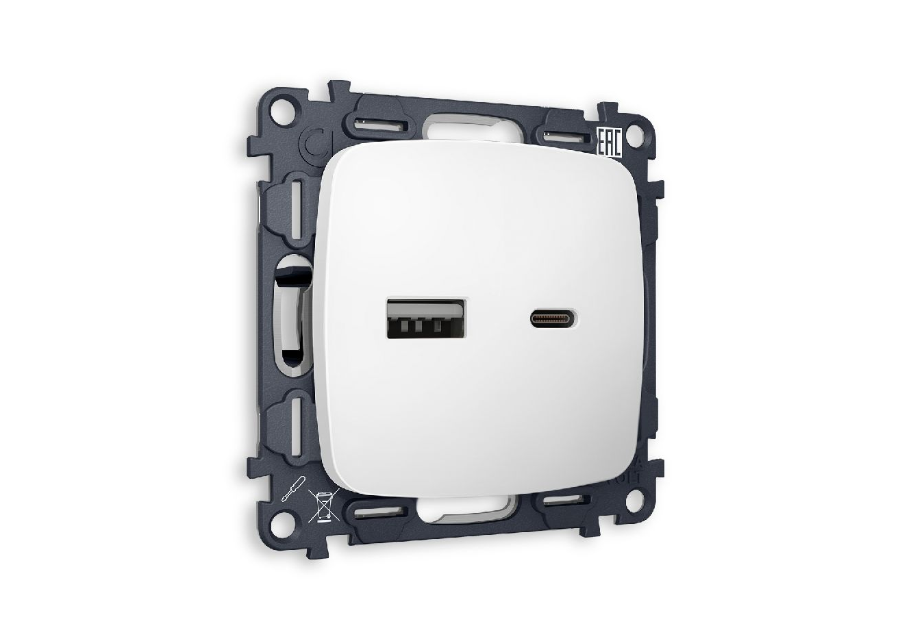 Комплект механизма розетки 2USB A+C 20W (быстрая зарядка) Ambrella Volt Omega MO131010
