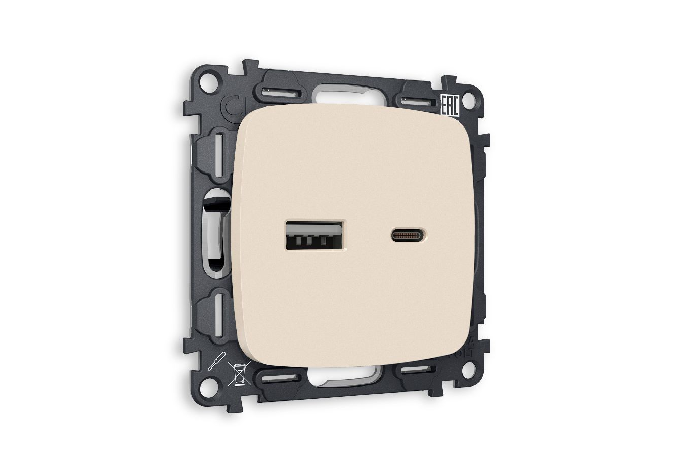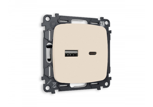 Комплект механизма розетки 2USB A+C 20W (быстрая зарядка) Ambrella Volt Omega MO331010