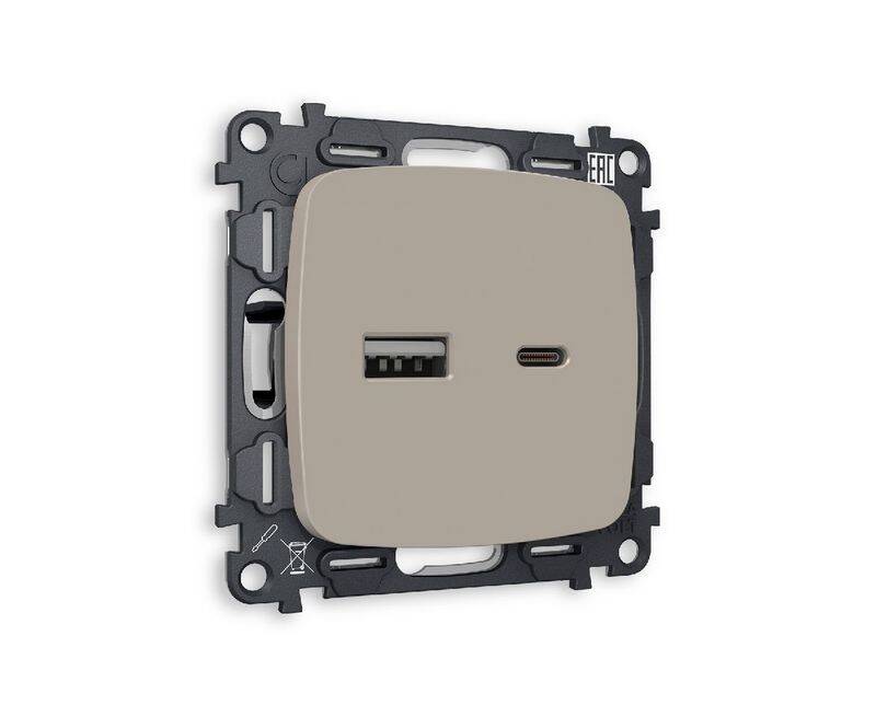Комплект механизма розетки 2USB A+C 20W (быстрая зарядка) Ambrella Volt Omega MO371010