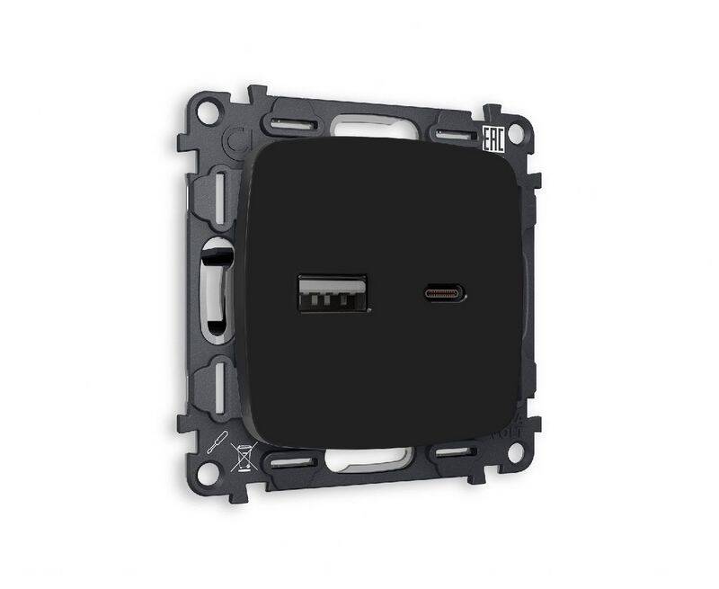Комплект механизма розетки 2USB A+C 20W (быстрая зарядка) Ambrella Volt Omega MO811010
