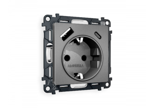 Комплект механизма розетки 2USB A+C 20W (быстрая зарядка) с/з Ambrella Volt Alfa MA660010