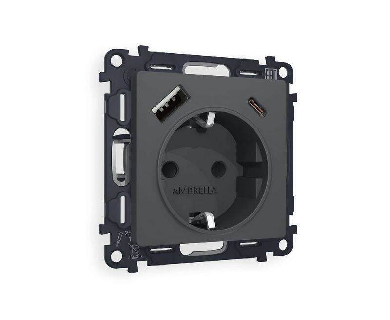 Комплект механизма розетки 2USB A+C 20W (быстрая зарядка) с/з Ambrella Volt Alfa MA910010