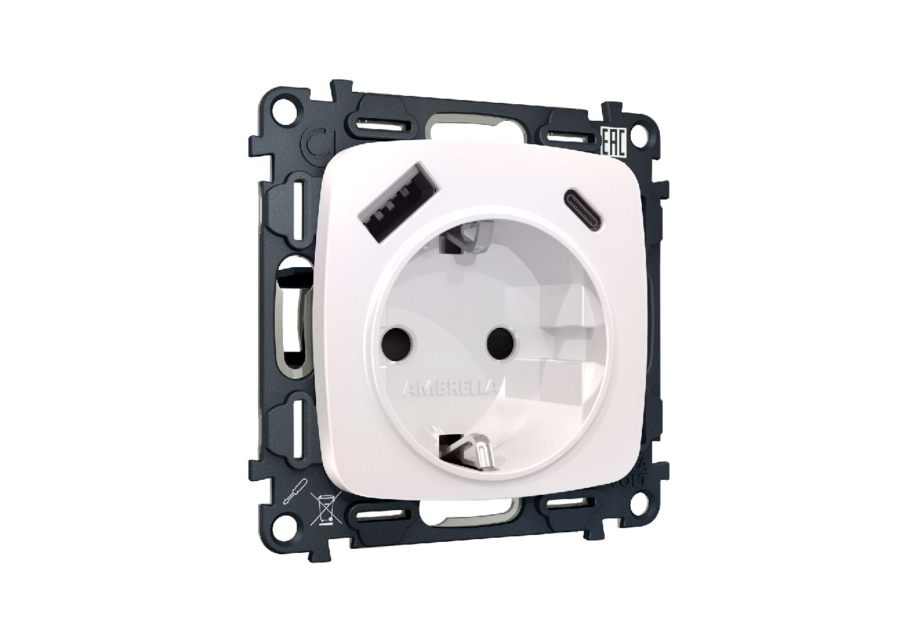 Комплект механизма розетки 2USB A+C 20W (быстрая зарядка) с/з Ambrella Volt Omega MO210010