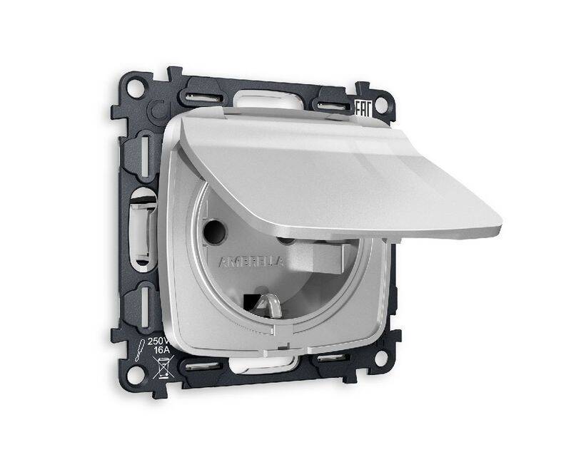 Комплект механизма розетки с/з со шторками и крышкой Ambrella Volt Omega MO408010