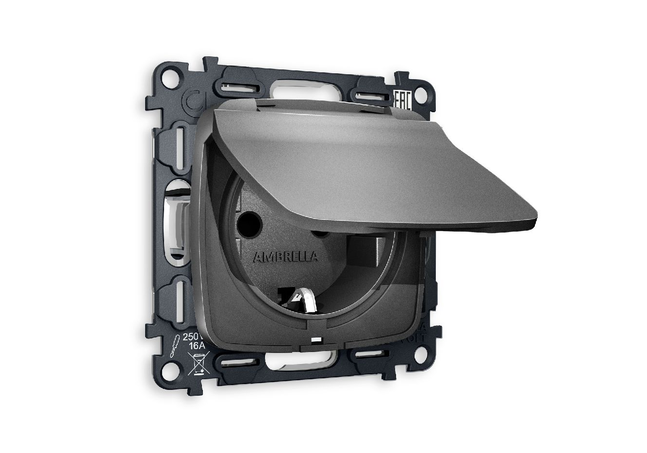 Комплект механизма розетки с/з со шторками и крышкой Ambrella Volt Omega MO658010