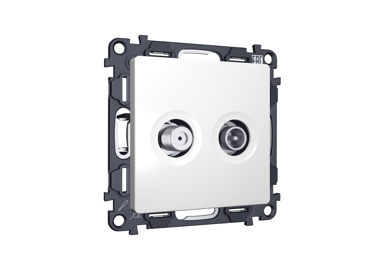 Комплект механизма розетки TV оконечной + SAT 5-862MHz 3.5dB/950-2150MHz 3.5dB Alfa Белый матовый Qu
