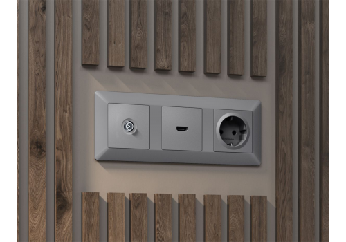 Комплект механизма TV розетки оконечной экранированной 5-1000MHz 3dB Alfa Сталь матовый Quant Ambrel