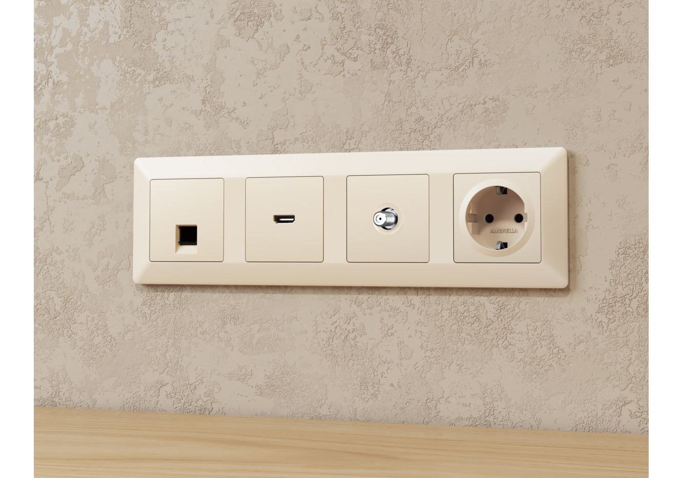 Комплект механизма TV розетки SAT 5-2400MHz 3.5dB Alfa Бежевый матовый Quant Ambrella Volt MA333050
