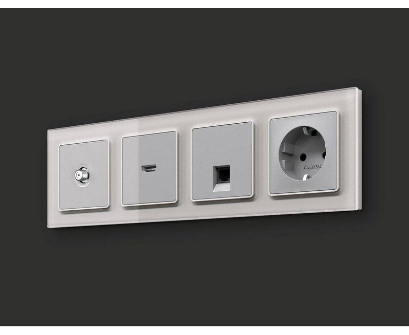 Комплект механизма TV розетки SAT 5-2400MHz 3.5dB Alfa Серебро глянец Quant Ambrella Volt MA413050 (
