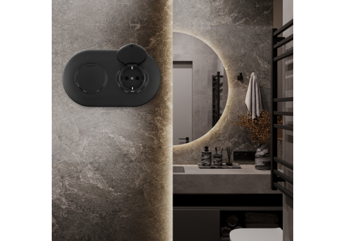Круглая розетка двойная (двухпостовая) с/з и шторками Arte Milano SET08-2-41-1x2 black