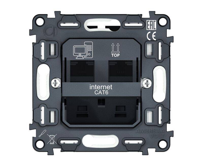 Механизм компьютерной двойной розетки RJ-45 (8P8C) CAT6 с автоматической защитной шторкой QUANT Ambr