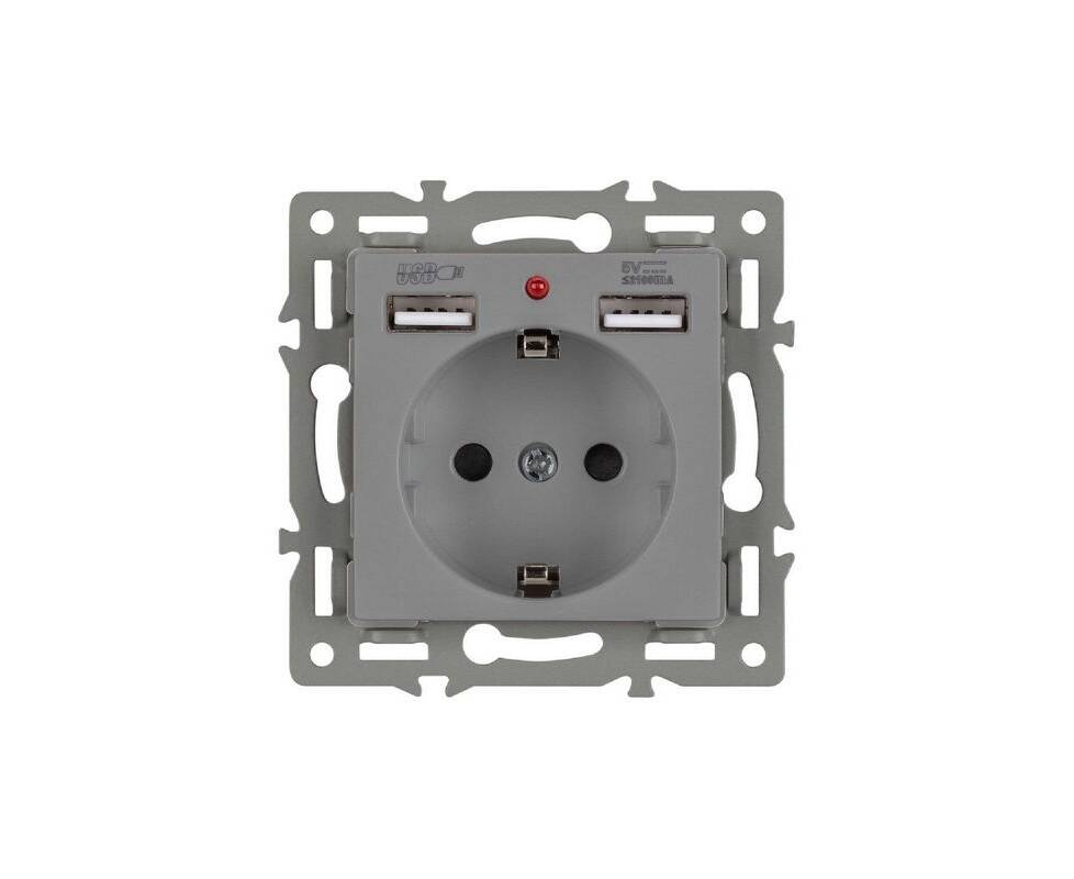 Механизм розетки с USB зарядкой Arlight SCT-MUAA-PL-GR (250V, 16A) 043735