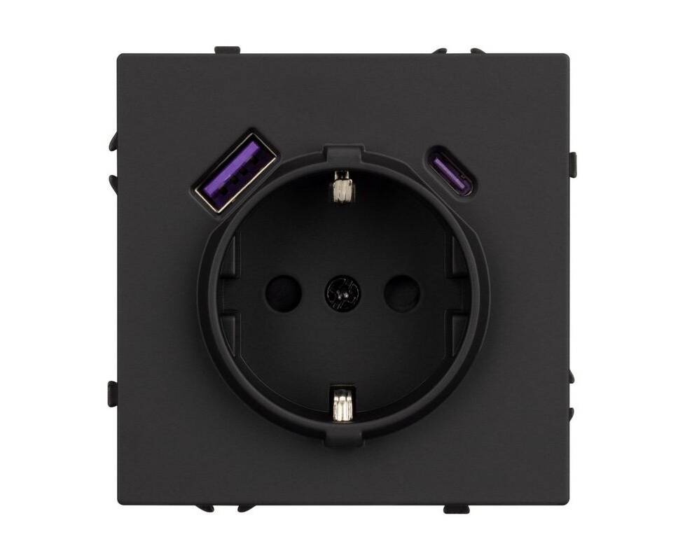 Механизм розетки с USB зарядкой Arlight SCT-NOBE-MUAC-SFPL-BK (230V, 16A) 054285
