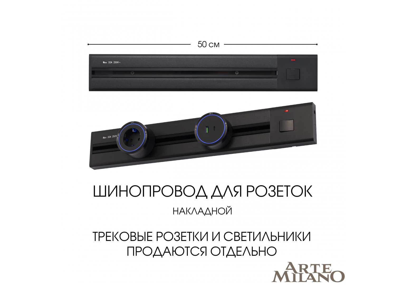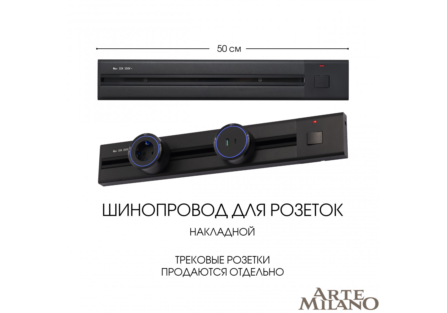 Накладной шинопровод с выключателем Arte Milano Am-track-sockets 385205TOB/50 Black