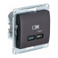 Розетка USB+USB type C Systeme Electric GLOSSA, скрытый монтаж, антрацит