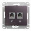 Розетка телефонная RJ11 Systeme Electric ATLASDESIGN, скрытый монтаж, базальт