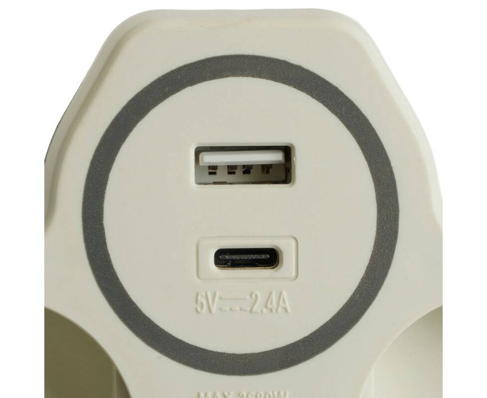 Разветвитель сетевой 2-местный с/з и USB+Type C Stekker ADP16-15-20 50071