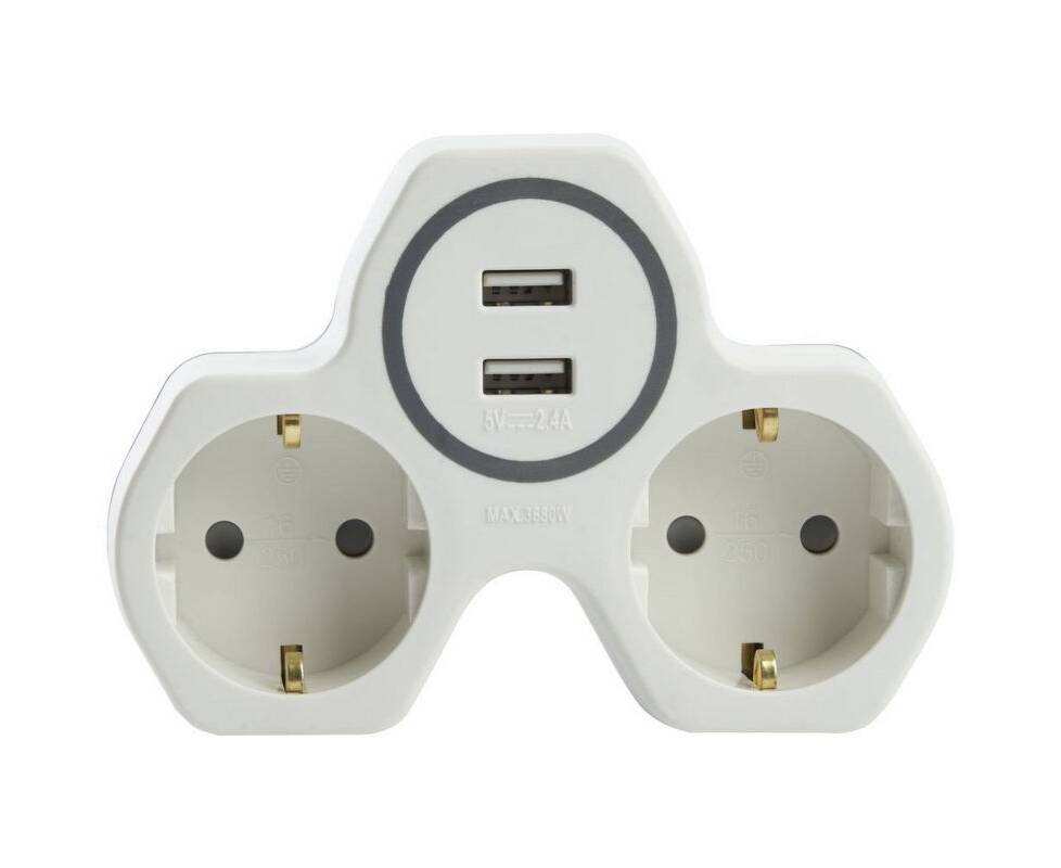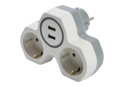 Разветвитель сетевой с 2хUSB Stekker 2гн с/з ADP16-14-20 32872