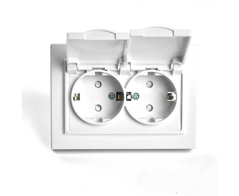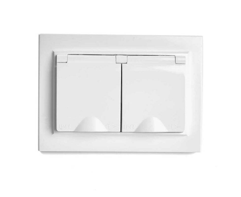 Розетка 2-местная 2P+PE Stekker Эрна с крышкой белый PST16-9015-01 49139