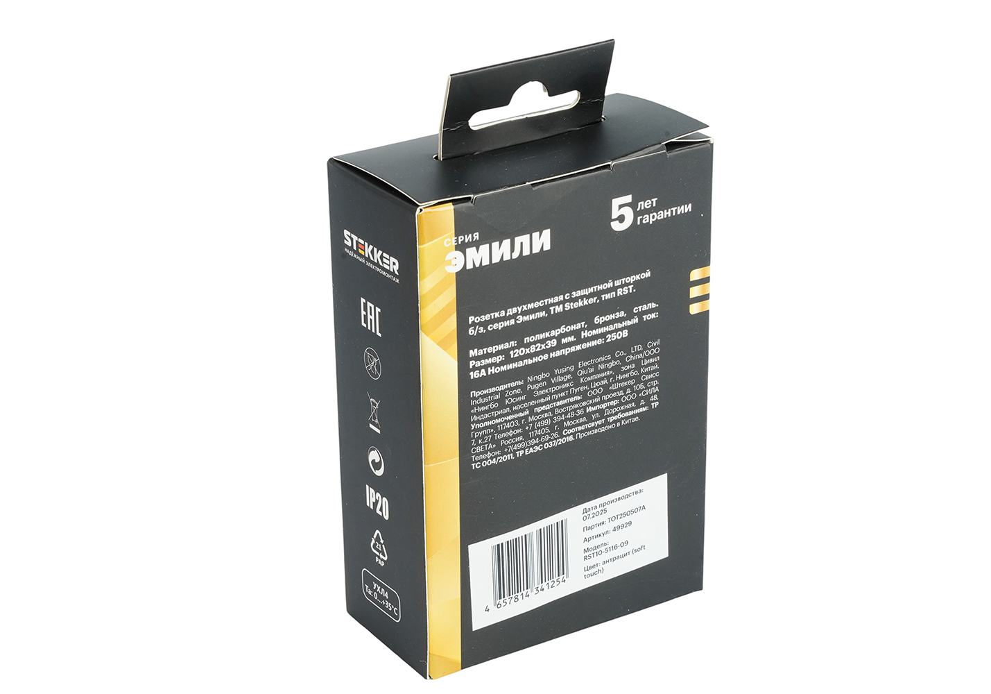 Розетка 2-местная с защитной шторкой Stekker Эмили б/з 250В 16А RST10-5116-09 антрацит soft touch 49