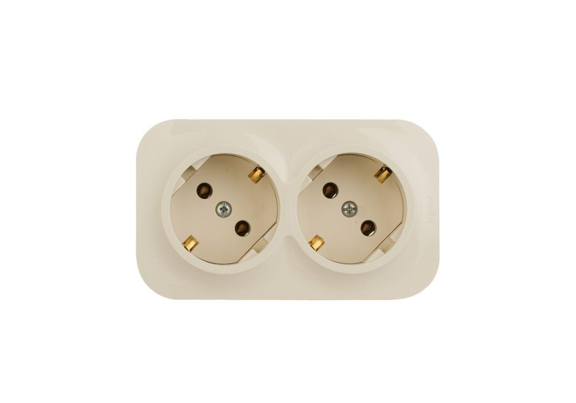 Розетка 2х2К+З Legrand Quteo 16A 250V слоновая кость 782263