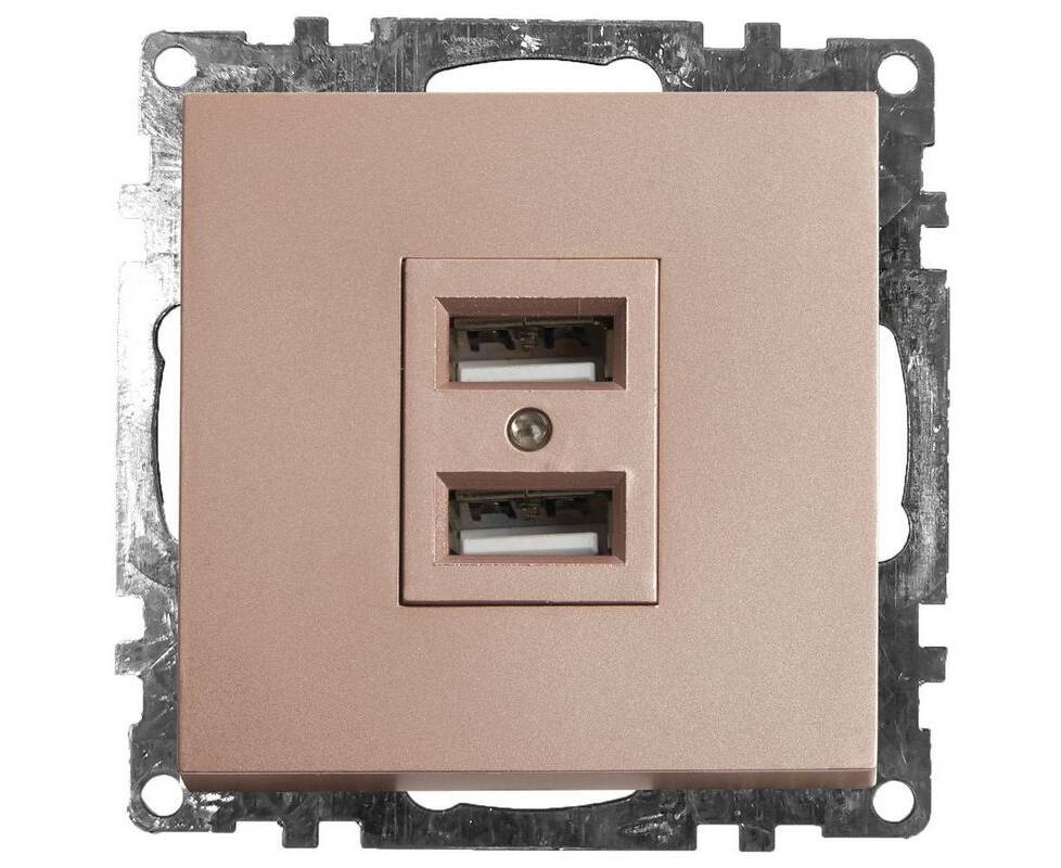 Розетка 2хUSB Stekker Катрин шампань GLS10-7115-02 39602