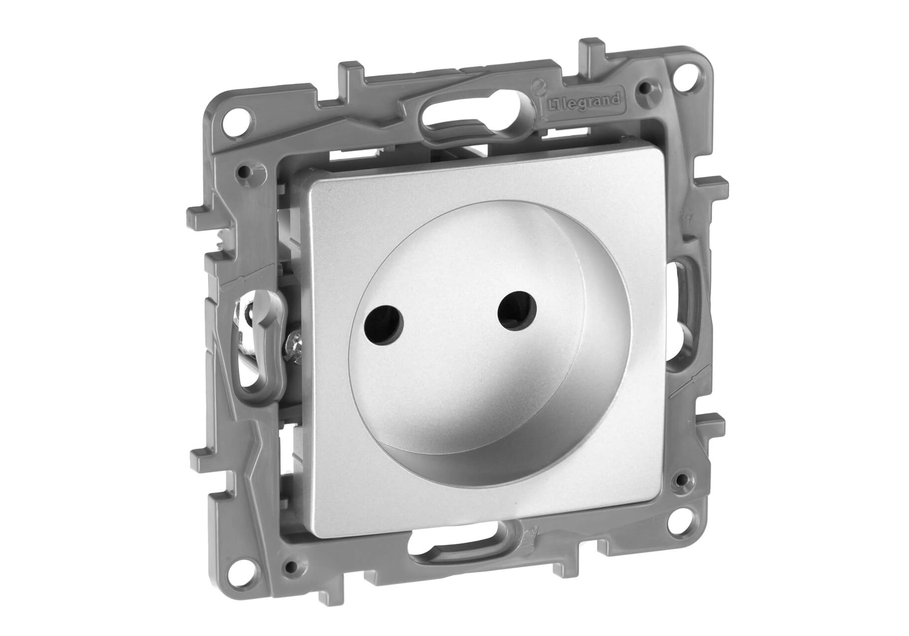 Розетка 2К Legrand Etika 16A 250V со шторками алюминий 672434