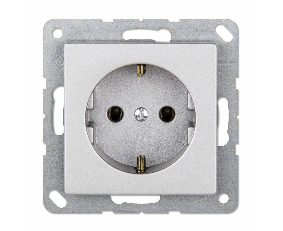 Розетка с заземлением безвинтовой зажим Jung A 500 алюминий A1520AL