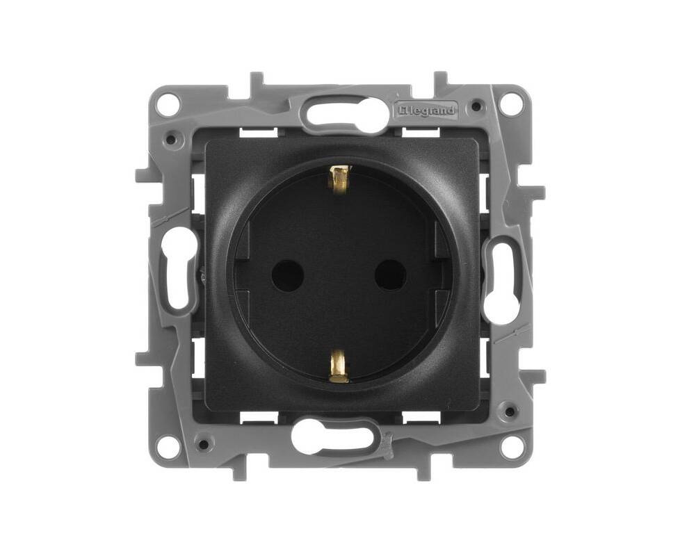 Розетка 2К+З Legrand Etika 16A 250V со шторками немецкий стандарт антрацит 672622