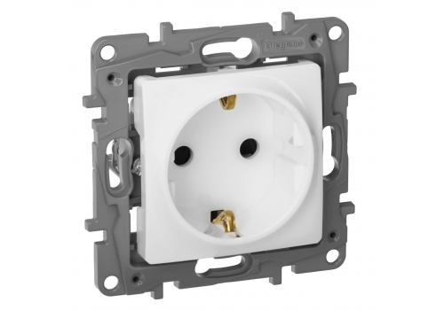 Розетка 2К+З Legrand Etika 16A 250V со шторками немецкий стандарт белая 672222