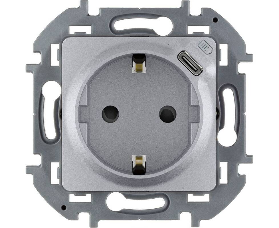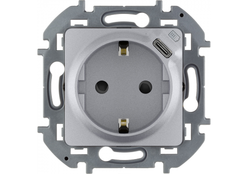 Розетка 2К+З немецкий стандарт 16А 250В со встроенным зарядным устройством USB C 1.5А 5В - INSPIRIA - алюминий