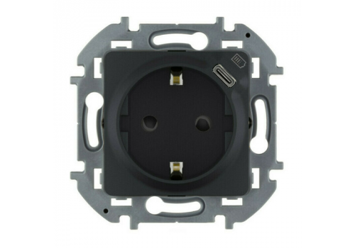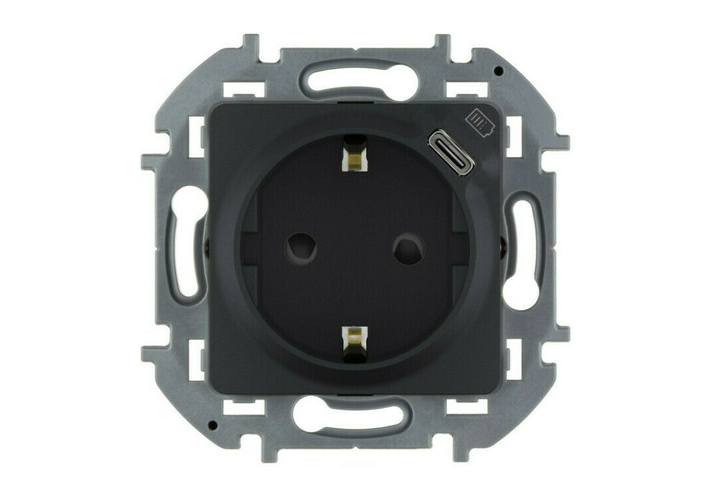 Розетка 2К+З немецкий стандарт 16А 250В со встроенным зарядным устройством USB C 1.5А 5В - INSPIRIA - антрацит