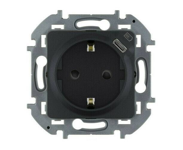 Розетка 2К+З немецкий стандарт 16А 250В со встроенным зарядным устройством USB C 1.5А 5В - INSPIRIA - антрацит