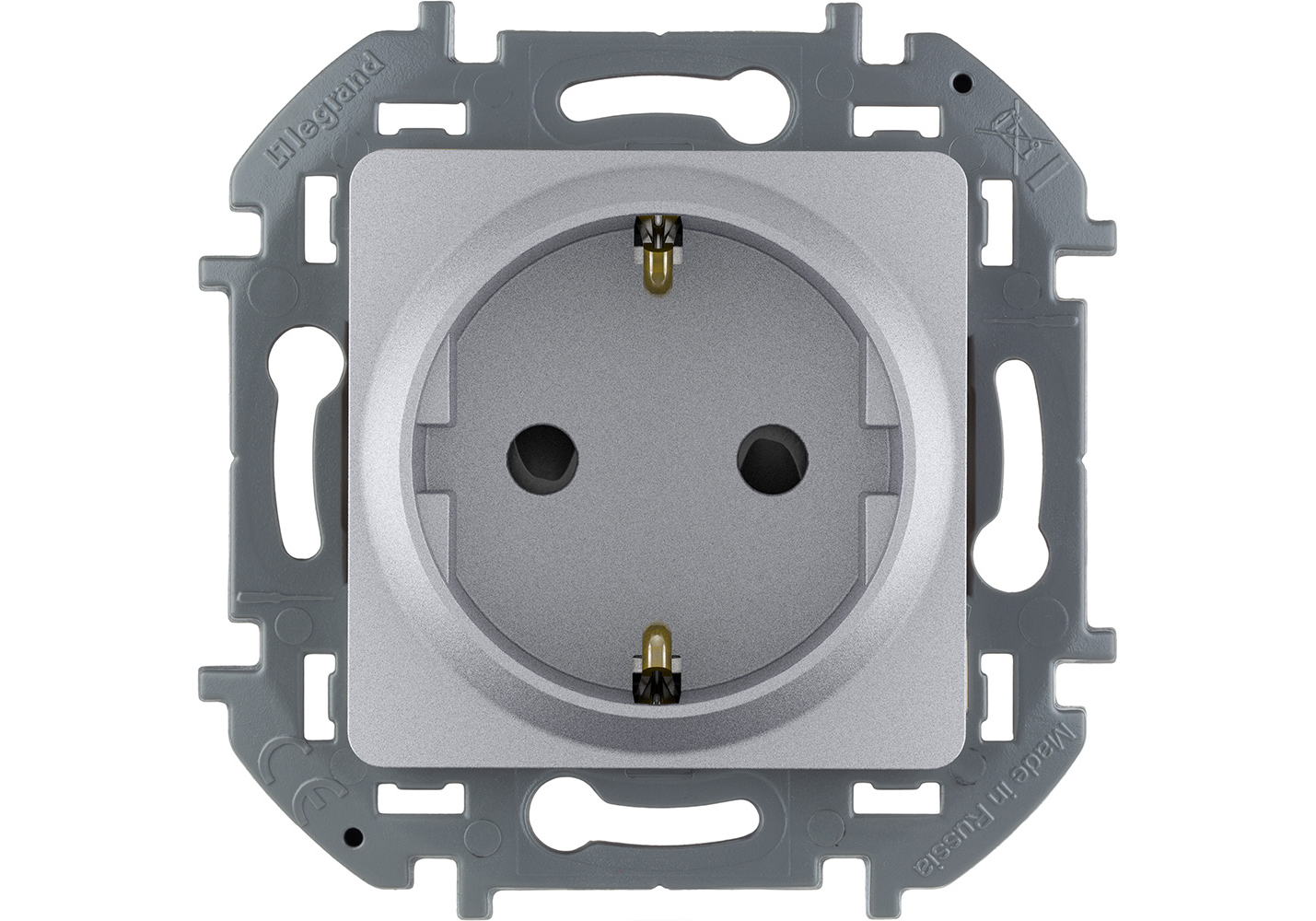 Розетка 2К+З со шторками - немецкий стандарт - 16 А - 250 В~ - INSPIRIA - алюминий