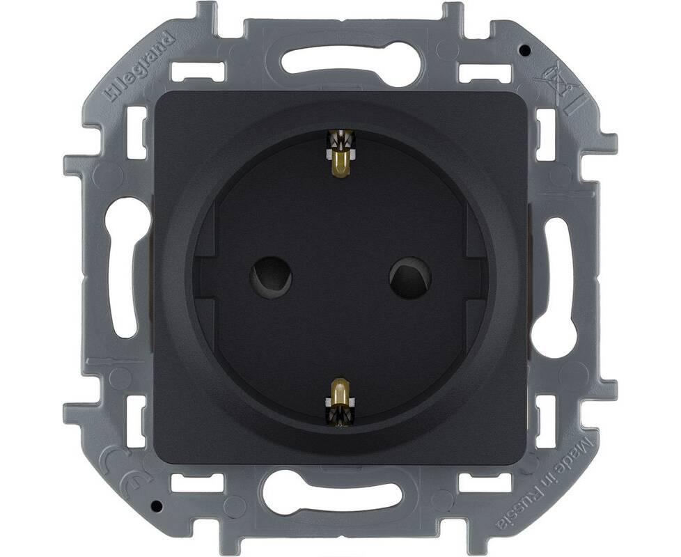 Розетка 2К+З со шторками - немецкий стандарт - 16 А - 250 В~ - INSPIRIA - антрацит