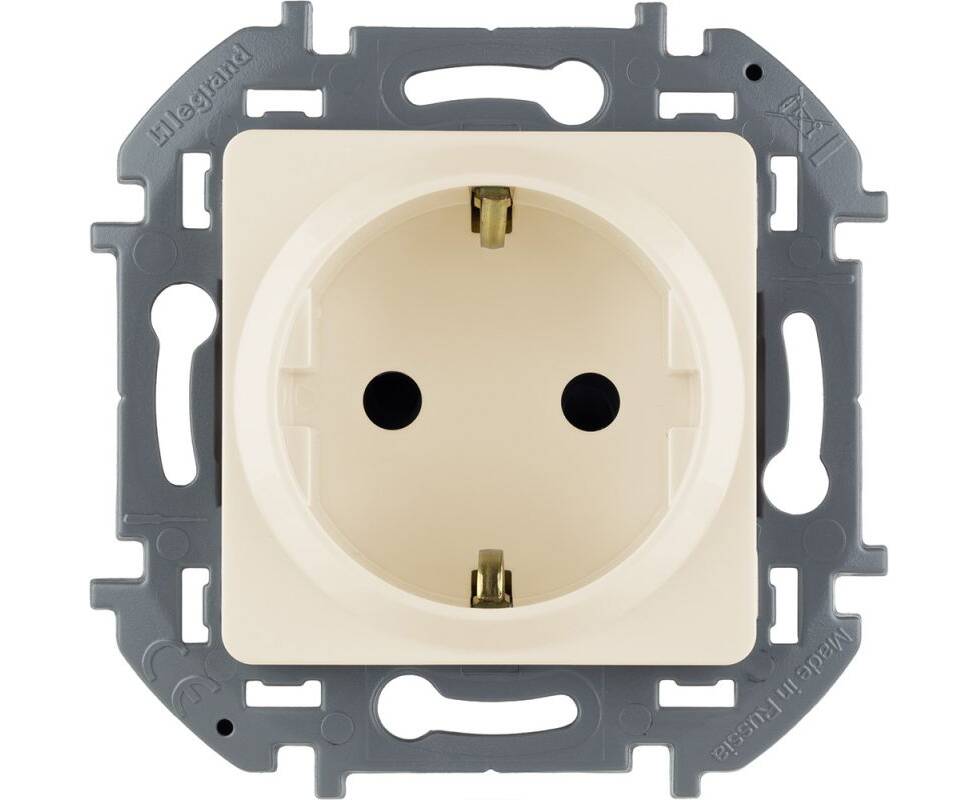 Розетка 2К+З со шторками - немецкий стандарт - 16 А - 250 В~ - INSPIRIA - слоновая кость