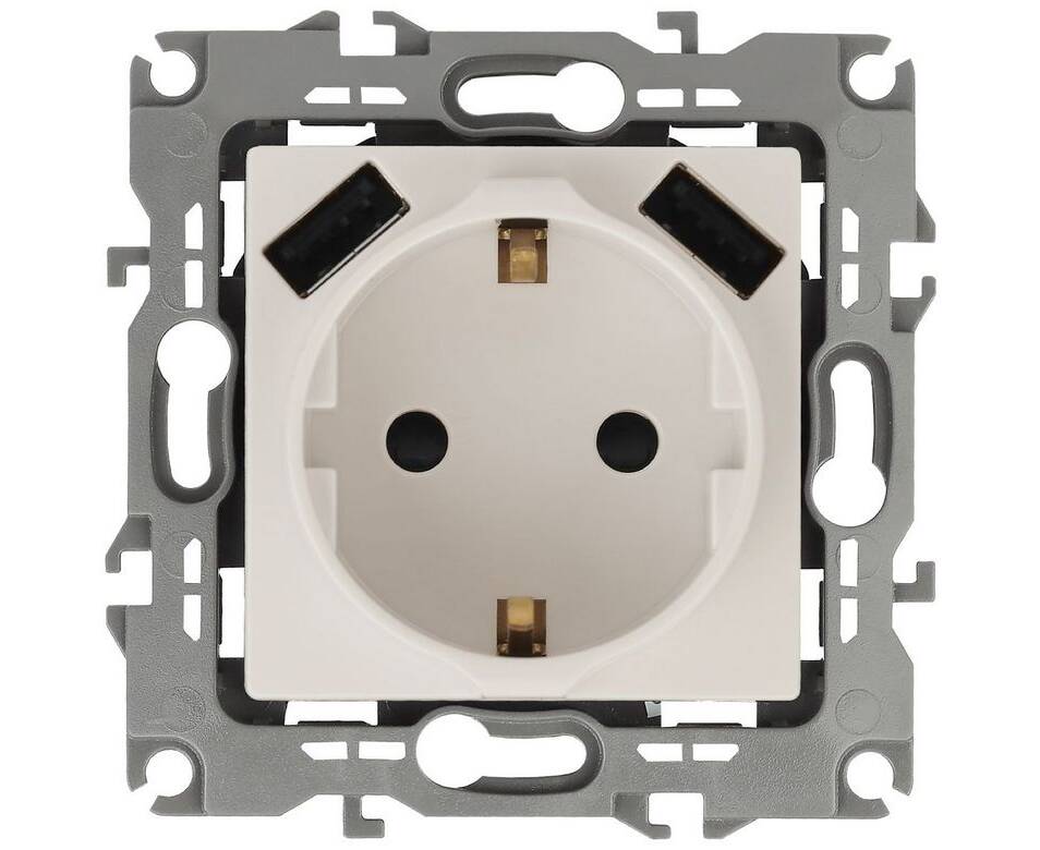 Розетка 2P+E со шторками и 2xUSB Эра 14-4109-02 Б0047868