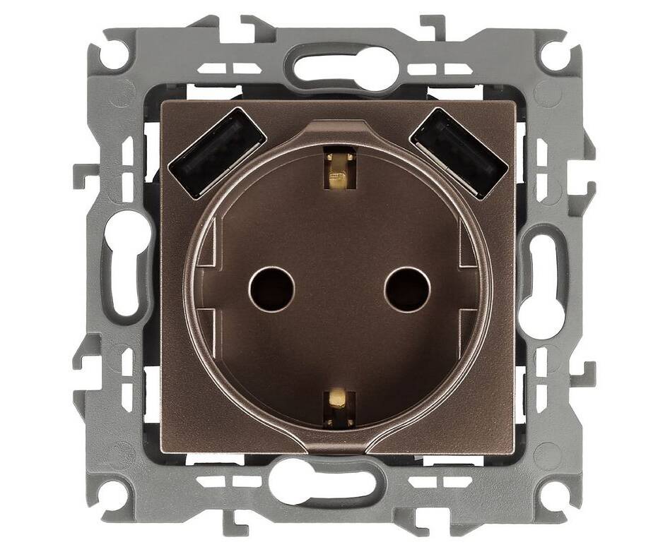 Розетка 2P+E со шторками с 2xUSB Эра 12-4109-13 Б0047847
