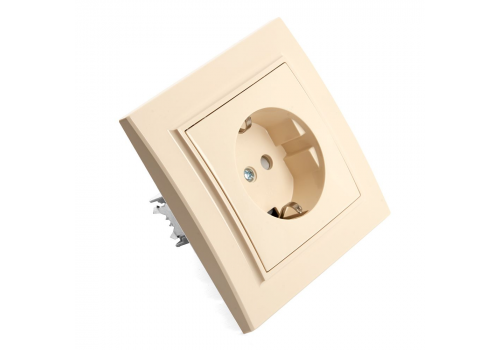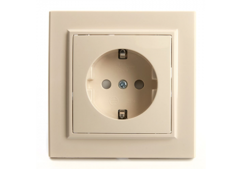 Розетка 2P+PE Stekker Эрна со шторками слоновая кость PST16-9010-02 39236