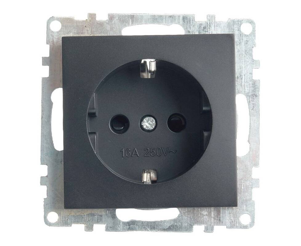 Розетка 2P+PE Stekker Катрин со шторками графит GLS16-7110-06 49423